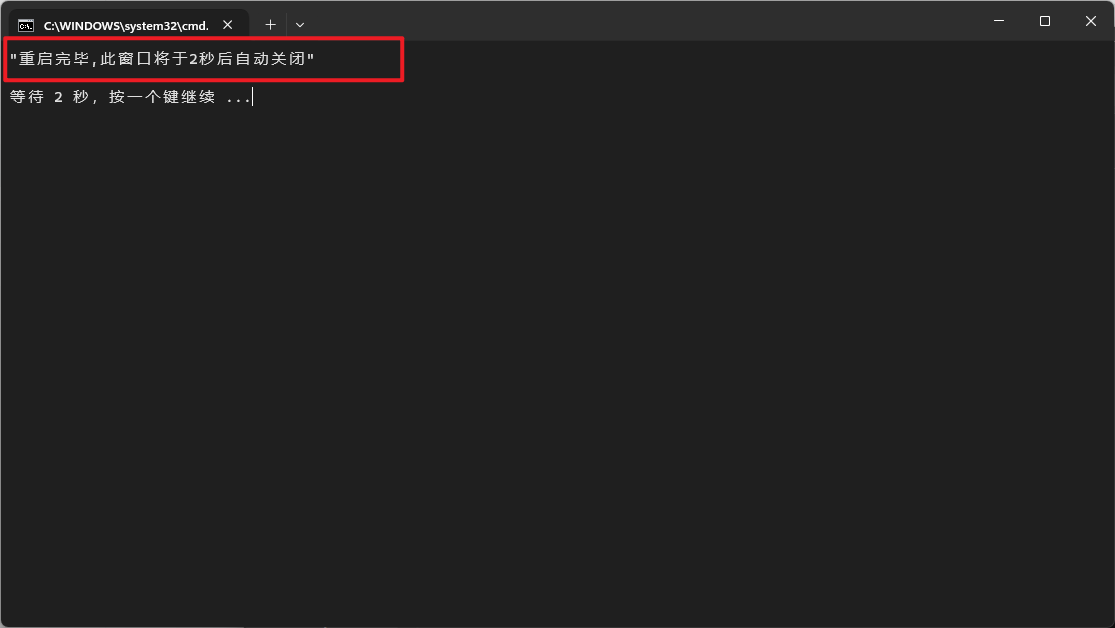 cmd /c :执行引号内的命令,并且执行完毕后关闭窗口。如果使用 'cmd /k' 则执行完毕后保留窗口,需要使用'EXIT'命令关闭窗口。即: