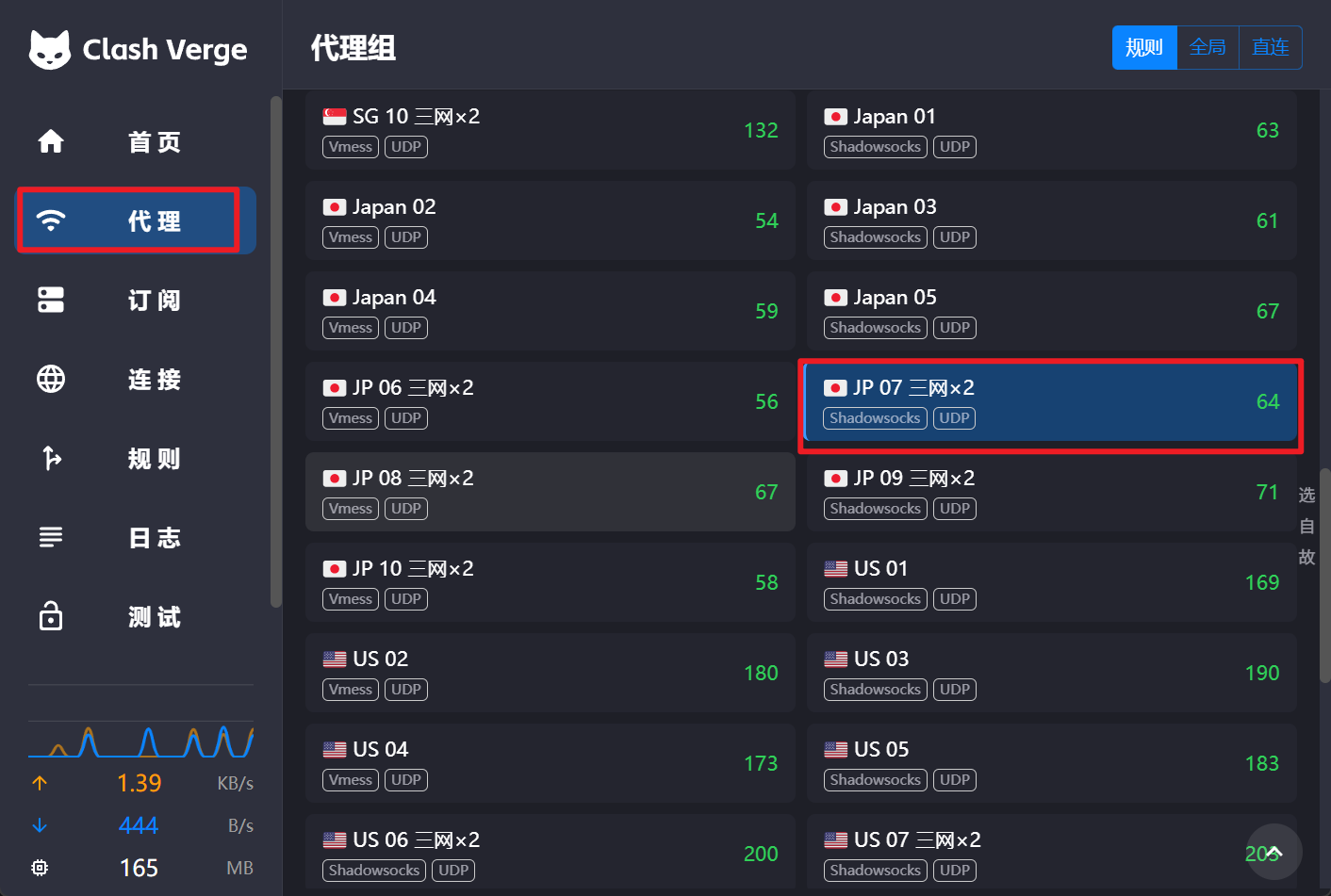 通常情况下,软件会自动选择网速最优的节点,(但我仍建议你手动选择一个合适的节点,因为自动选择有时候会有误差),若遇到网络波动,导致无法上网,请尝试更新订阅,并手动更换一个延迟较低的节点。若所有节点全部掉线,只能等待厂商修复。